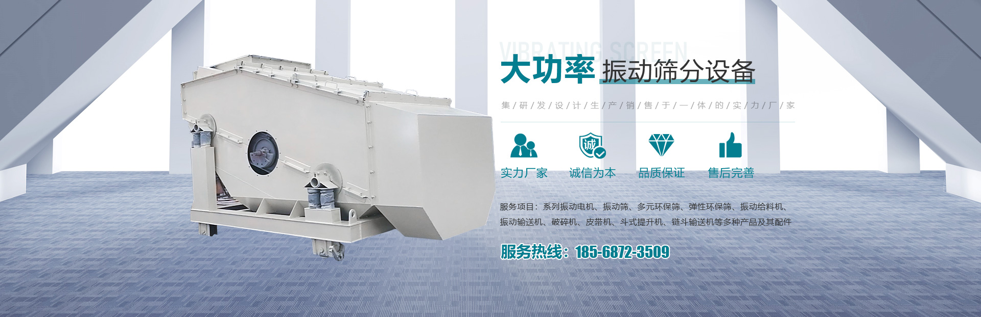 • 主要產品有系列振動電機、振動篩、多元環保篩、彈性環保篩、振動給料機、振動輸送機、破碎機、皮帶機、斗式提升機、鏈斗輸送機等多種產品